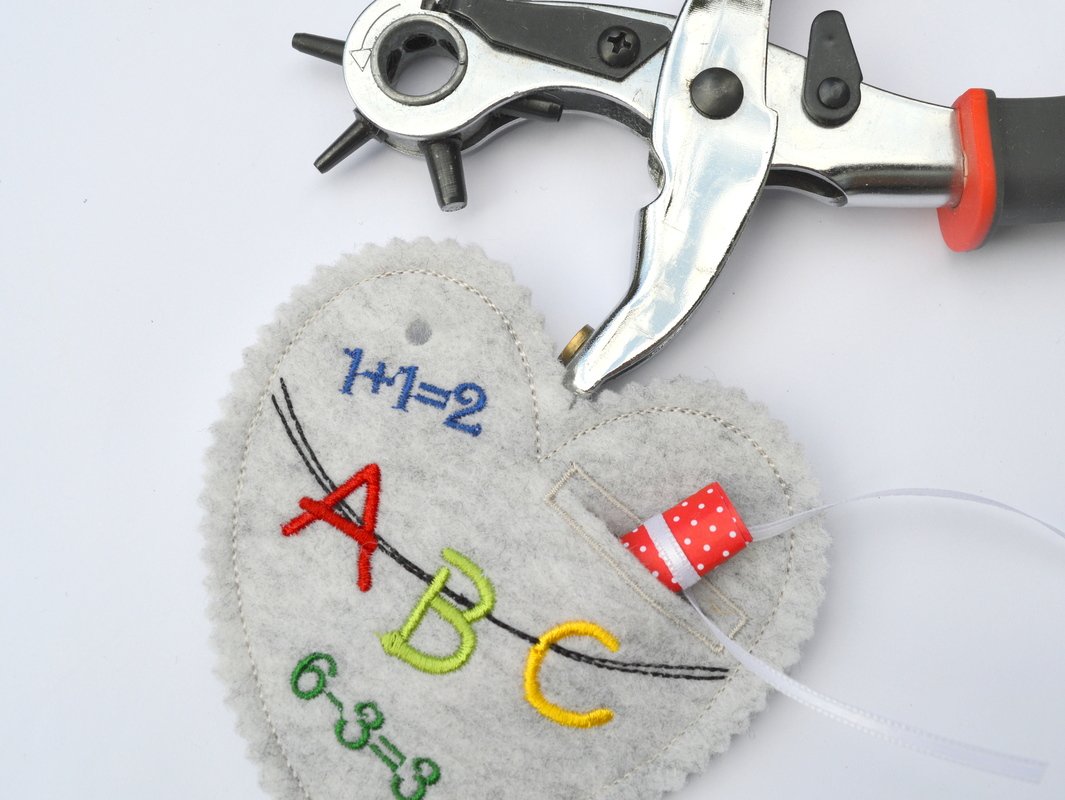 Die Anhänger werden komplett im Rahmen von der Stickmaschine gestickt! Ich verwende dafür einen Wollfilz, es kann aber auch z.B. (Kunst-)Leder, Jeansstoff oder Stickfilz verwendet werden.