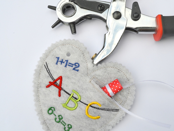 Stickdatei zum Schulanfang, um Geldgeschenke, Gutscheine oder Glückwünsche am ersten Schultag zu verschenken.