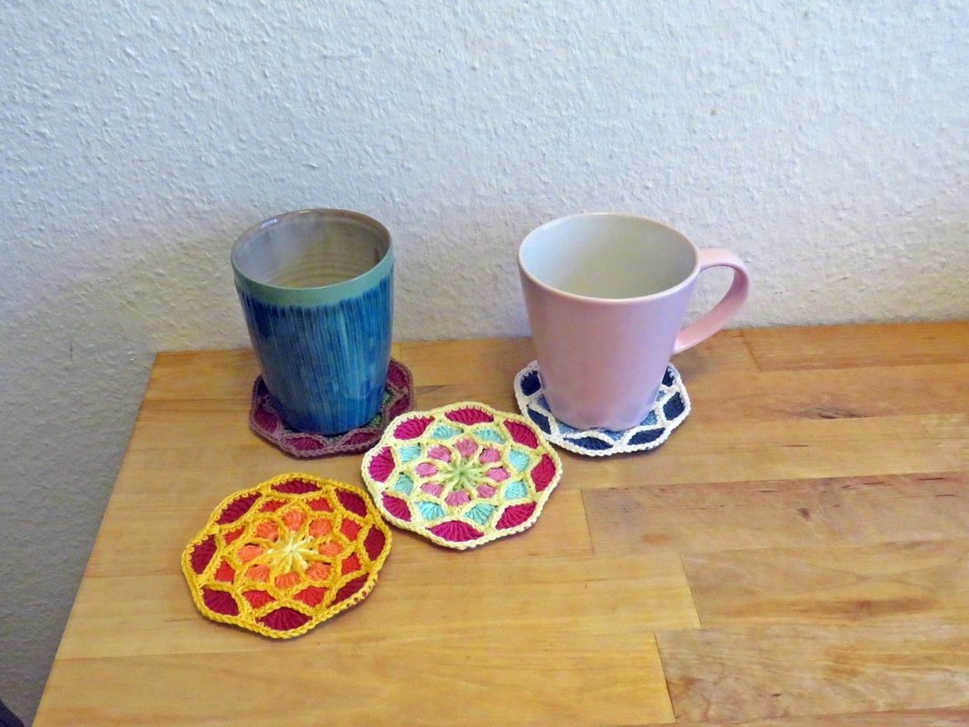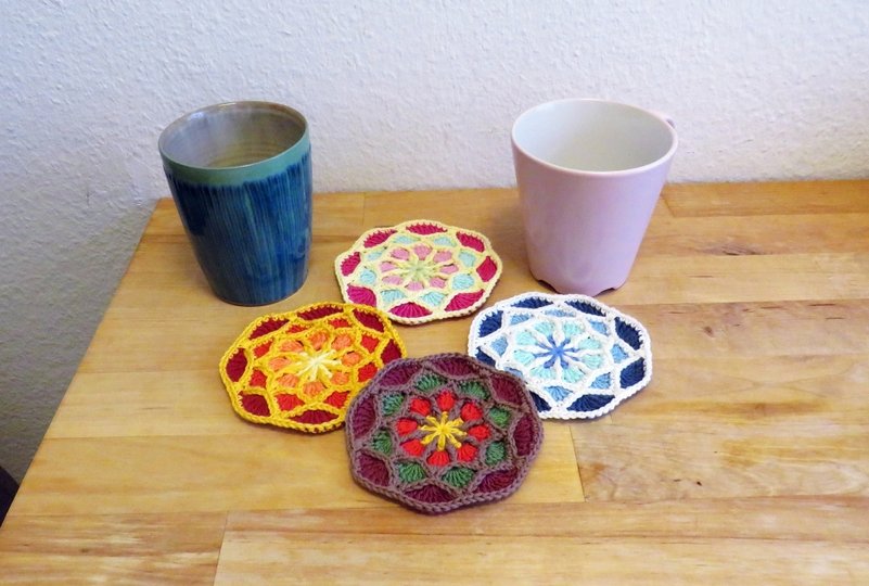 Hier ist meine Anleitung für kleine Mandalas, die du sehr schön als Glasuntersetzer verwenden kannst.