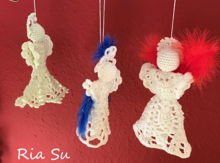 3 kleine Engel als Schutzengel oder Weihnachtsengel. Auch für Verzierungen an Päckchen oder Geschenken ein Blickpunkt. Verhziehrung kann ganz nach Belieben gemacht werden.