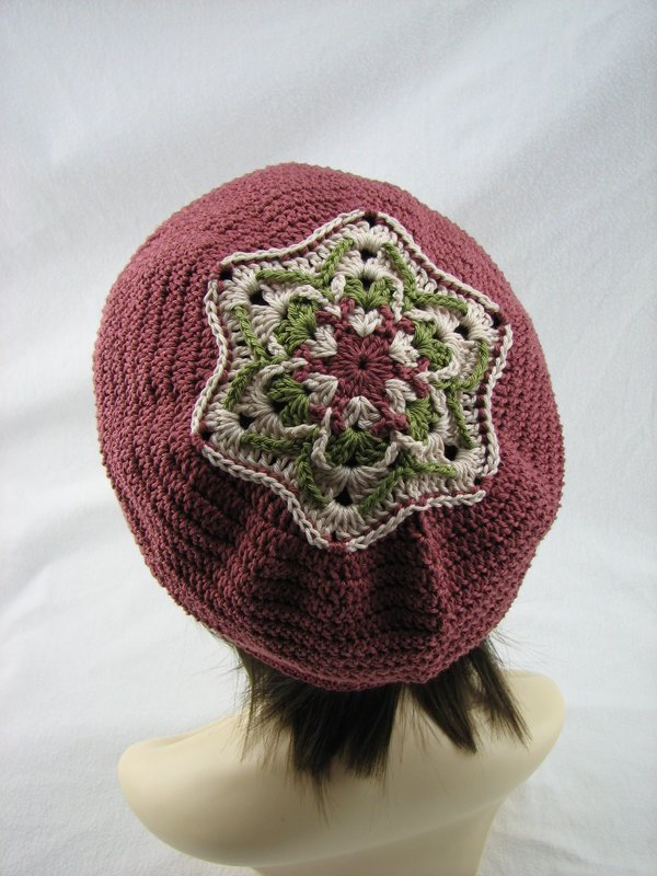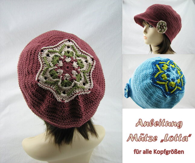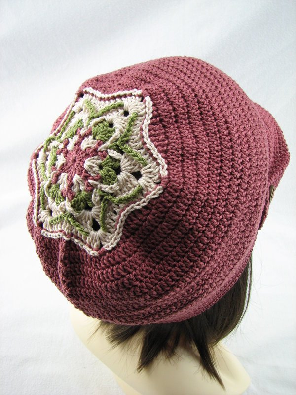 Sieht sie nicht toll aus - die Mütze in der Trendfarbe 2015: marsala. Die Blüte im Mützenoberteil kommt durch die Naturfarben wunderbar zur Geltung und ist ein echter Hingucker. Aber auch in frischen Frühlingsfarben macht sie was her. Mit dieser Mütze werden Sie überall auffallen.