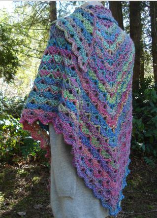 Show off your crochet skills with this gorgeous shawl. You don't have to worry about changing colors and working in loose ends to get this colorful striping effect. Use the yarn described below or find a self-striping yarn and the work is done for you.