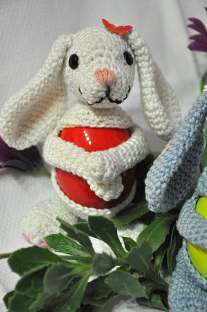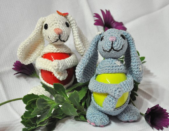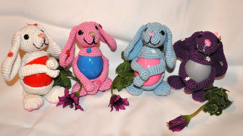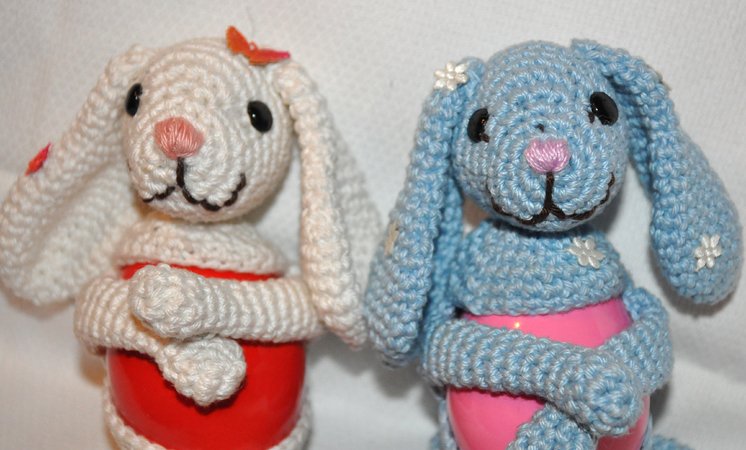 Diese Häschen sind Eierwärmer und zugleich auch eine Geschenkverpackung, ein kleines Osternest für sich.