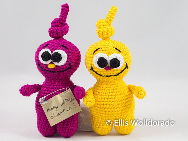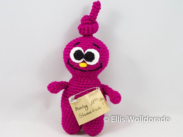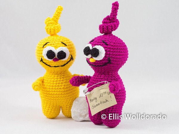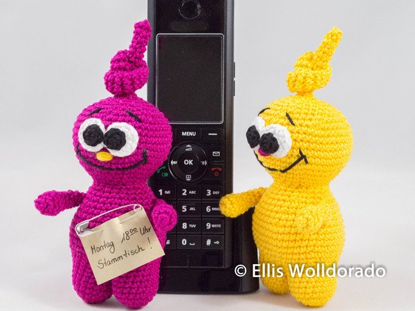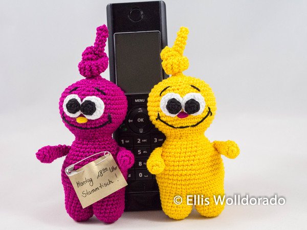 Häkel Dir am besten ganz viele kunterbunte "Knötchen" - sie peppen garantiert jeden Schreibtisch auf. Oder verschenke das Männlein als Erinnerungsstütze an jemanden, der etwas Wichtiges auf gar keinen Fall vergessen soll...