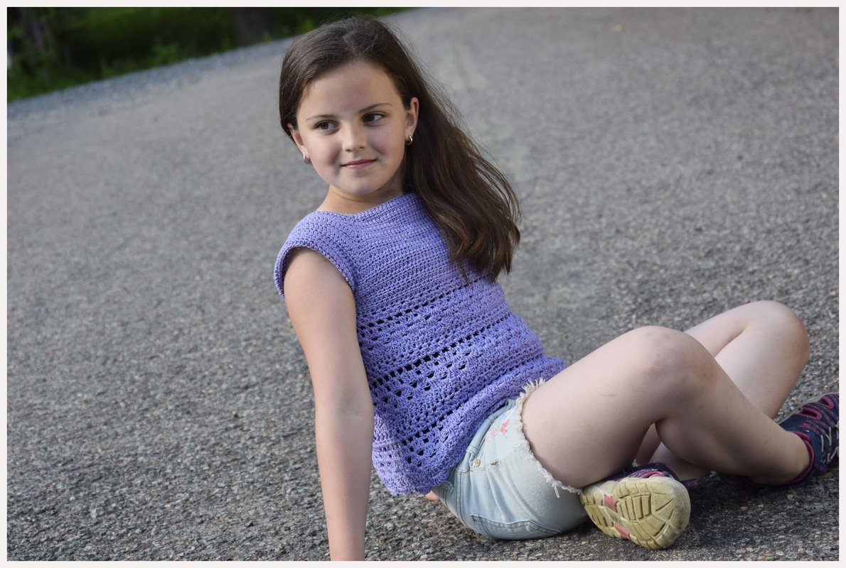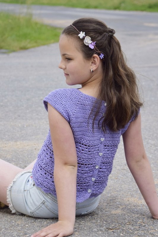 Die Anleitung wird mit der Öffnung hinten als Top erklärt. Es beginnt von am Hals und wird nach unten im Raglan von Oben gearbeitet, so lässt es sich besonders gut an jede Größe anpassen. Unterhalb der Brust wird ein schönes Muster gearbeitet was diesem Model einen schönen romantischen Look gibt.
