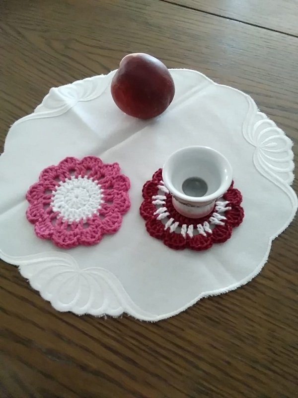 Ich habe mir mal das Vergnügen gegönnt und alle die Kleinigkeiten, die mir meine Großmutter vor so vielen Jahren beigebracht hat, nachzuarbeiten und eine Anleitung zu schreiben. Herausgekommen sind verschiedene Untersetzer, die man ja immer mal gebrauchen kann.