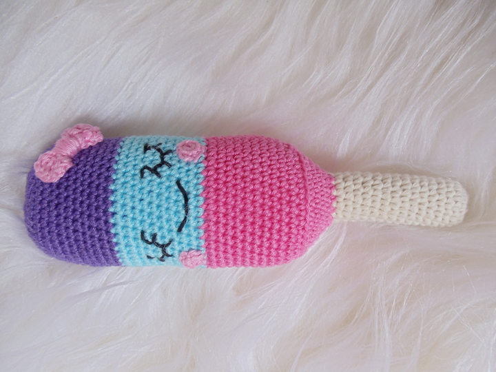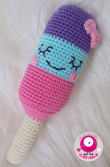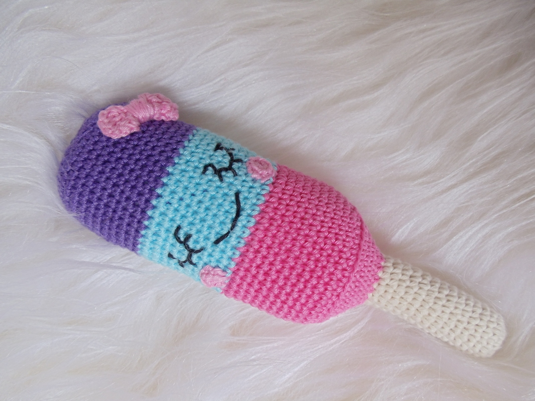 Mit dieser Häkelanleitung kann sich jeder sein Lieblings Eis am Stil nachhäkeln. Ohne aufgestickte Augen und Schleife kann dieses Eis auch super zum Spielen verwendet werden. Achtet bei der Herstellung als Spielzeug bitte auf geeignete zertifizierte Wolle und auf die Produktsicherheit.