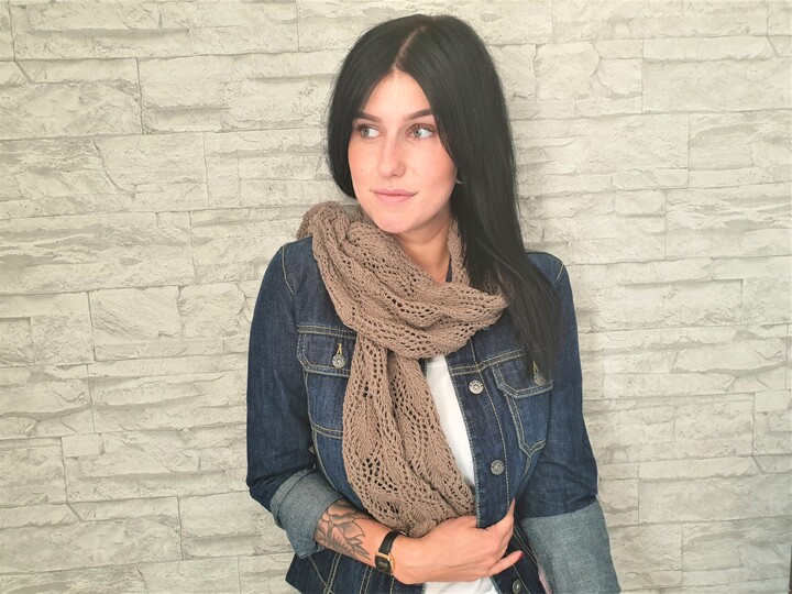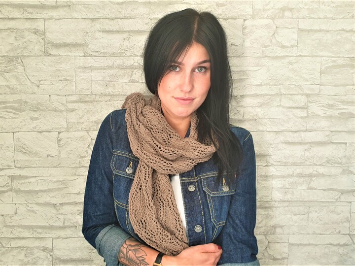 Der fertige Schal hat eine Breite von 30 cm und eine Länge von 130cm.