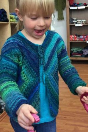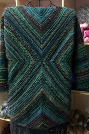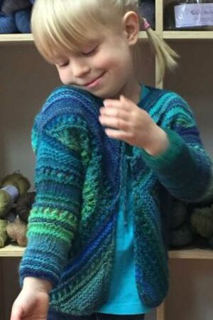 Eine tolle Jacke aus dem vielseitigen Garn Filace Moira mit dem wunderbaren Farbwechsel. Die Jacke wird in verschiedene Richtungen gestrickt und ist damit sehr wirkungsvoll - ein echter Hingucker.