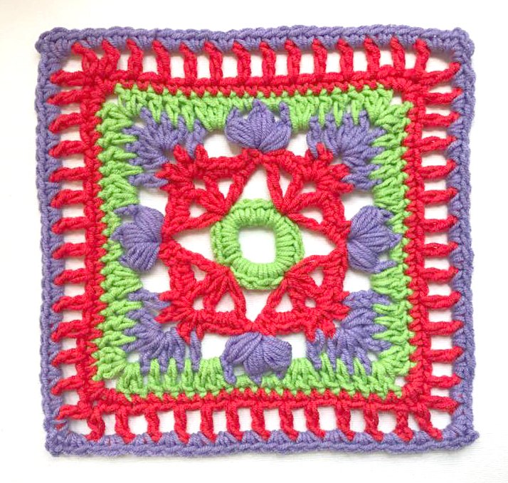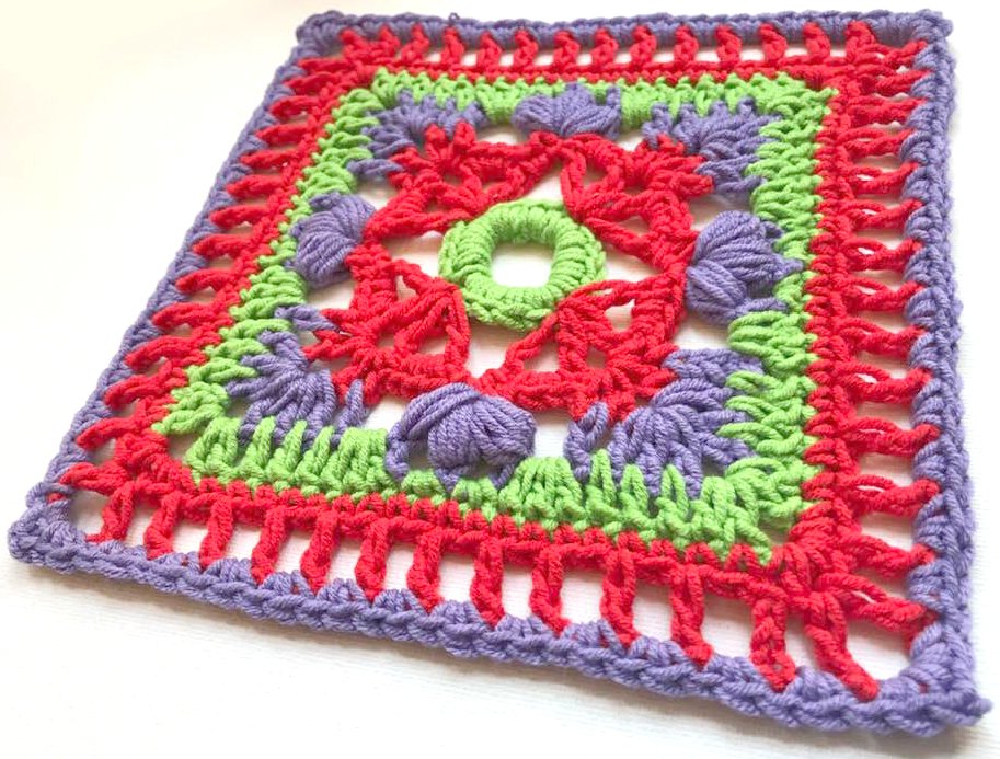 Granny "Traudl" ist ein tolles Grannymuster, Du kannst es so wie hier mit einem häufigem Farbwechsel häkeln oder mit einem Verlaufsgarn.