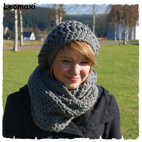 Eine Anleitung mit der du eine einfache Beanie mit Bommel und einen passenden einfachen Loop häkeln kannst.