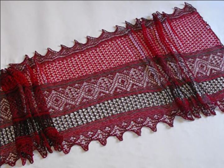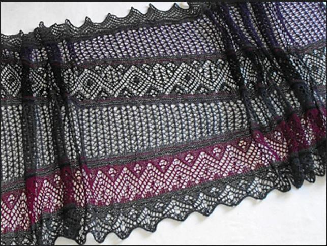 *DonnaRocco* kann als Schal oder Stola gestrickt werden. Durch das Weglassen eines schrägen Teils (mit verkürzten Reihen) kann eine asymmetrische Stola gestrickt werden.