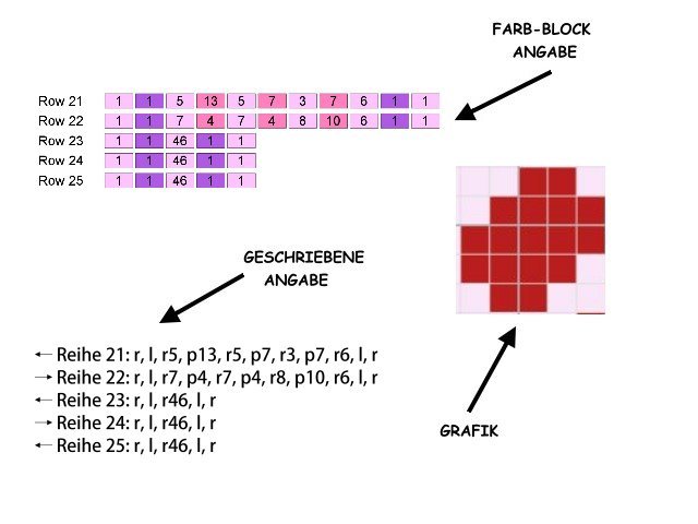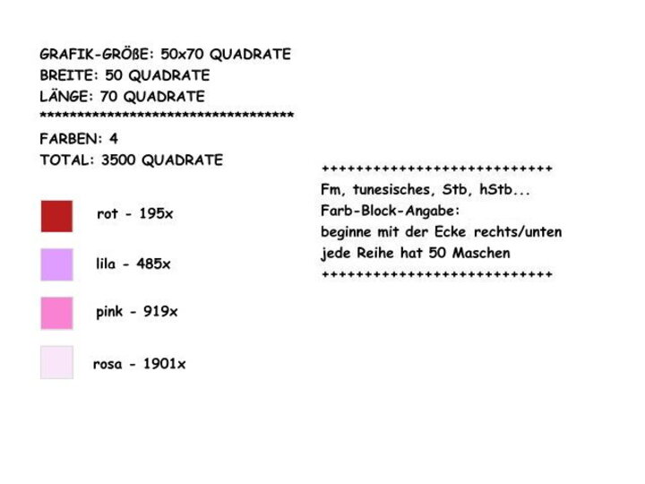 -farbige Zahlen-Blöcke für jede Reihe für feste Maschen (Stb od. hStb)