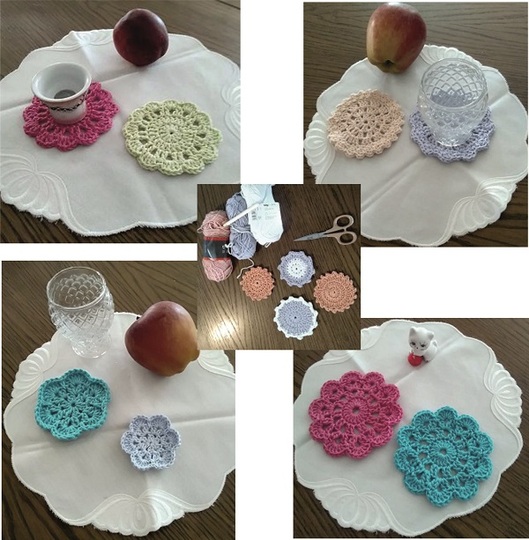 Die Parade geht weiter mit 5 verschiedene Untersetzer in einer Anleitung. Für jede Sorte gibt es eine gesonderte Anleitung. Als kleines schnelles Mitbringsel gut geeignet. Vielleicht auch als Resteverwertung oder als Einstieg für Anfänger.