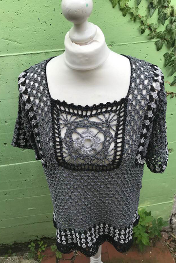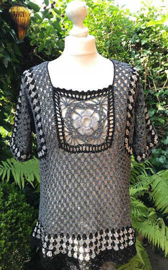 Meine für eine Tunika "FRAU MÜLLER" passt für Größe 38 ( Schneiderpuppe) ..und auch mir Größe 54 ...hier ist "FRAU MÜLLER" eben enganliegend..wobei man "FRAU MÜLLER" auch noch größer häkeln kann!