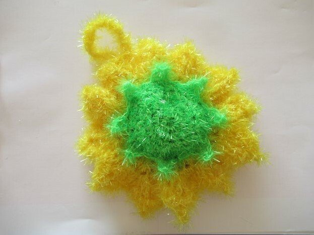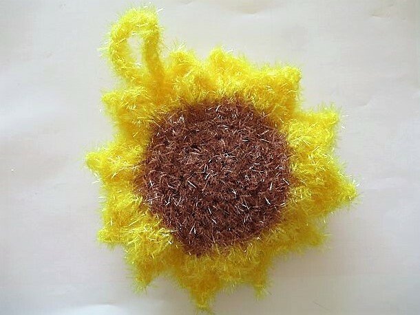 Die sonnenblume wird aus Rico Creative Bubble gehäkelt, einem Garn, das speziell für Spül- und Badeschwämme entwickelt wurde. Das Garn ist etwas kratzig und deshalb sehr gut geeignet, um festsitzende Rückstände auf dem Geschirr zu lösen. Auch als Peelingschwamm lässt es sich prima verwenden.Es trocknet schnell und lässt sich bei 60°C in der Waschmaschine waschen. So kann der Schwamm immer wieder verwendet werden und bleibt hygienisch sauber.