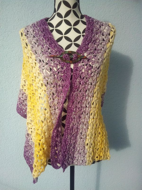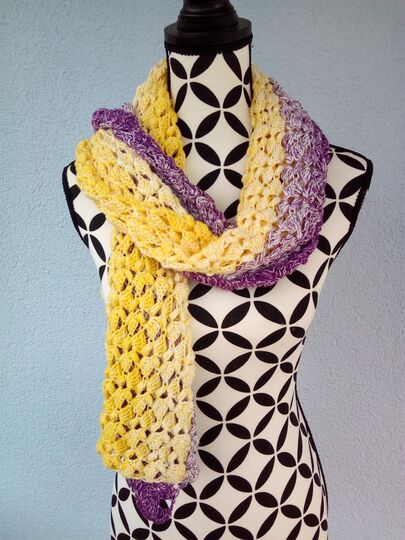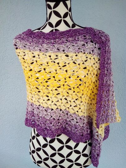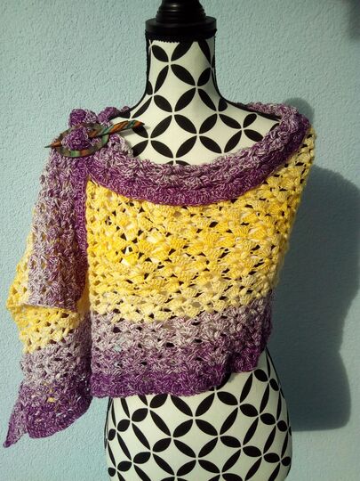 Meine fertige Stola hat die Maße 150 cm x 50 cm. Häkelfestigkeit und das verwendete Material können die Größe beeinflussen.