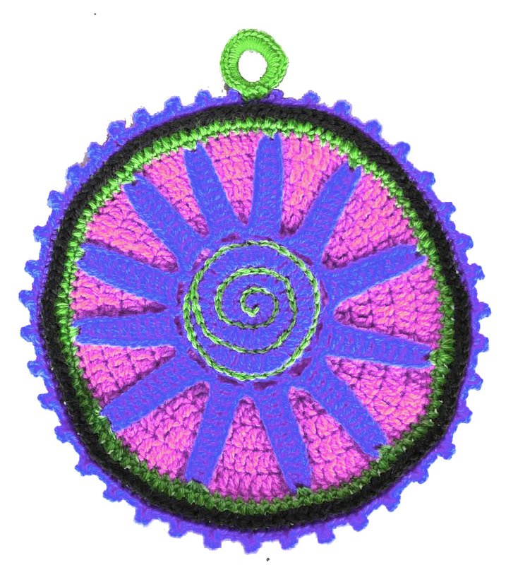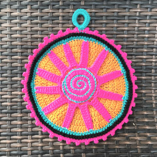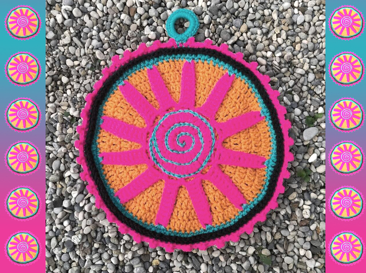Für den schönen Topflappen "Sonnenrad" kannst Du fast jede Wollestärke zwischen 80m-110 m pro 50 gr benutzen...Baumolle ist für einen Topflappen immer die beste Wahl!..die Farneauswahl bleibt natürlich DIR überlassen ich benutze hier 4 Farben.