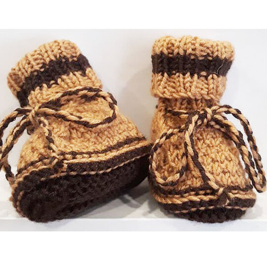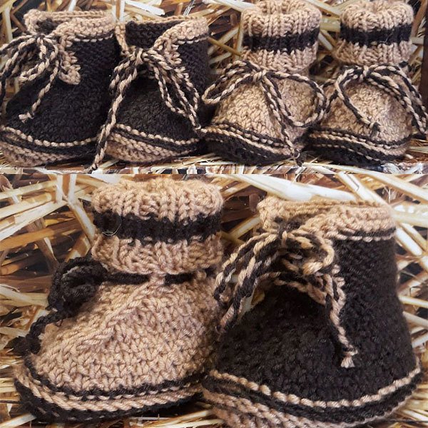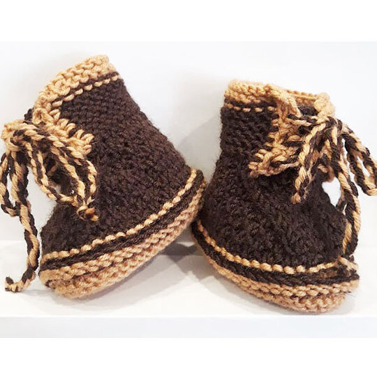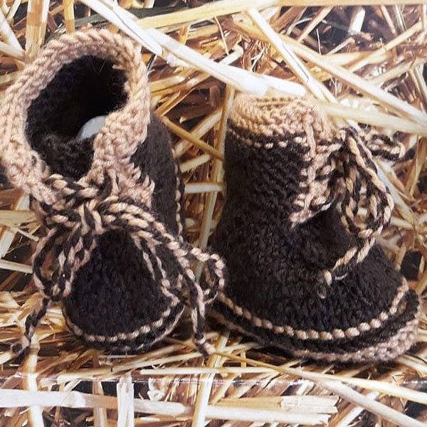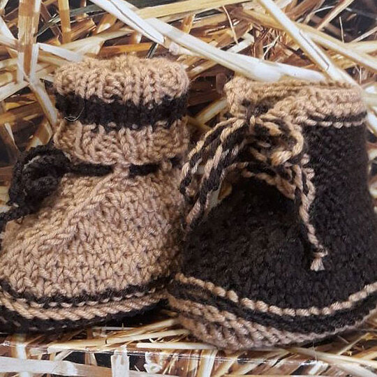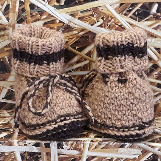 Die Babyschuhe werden in Runden gestrickt.