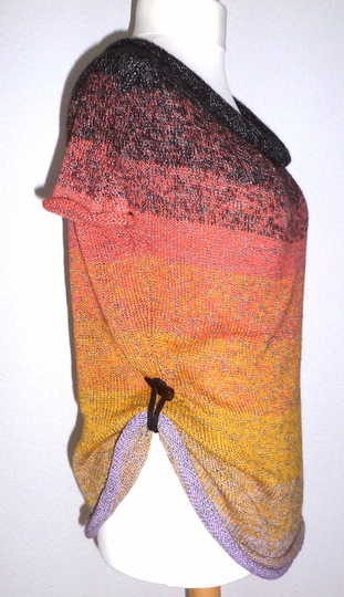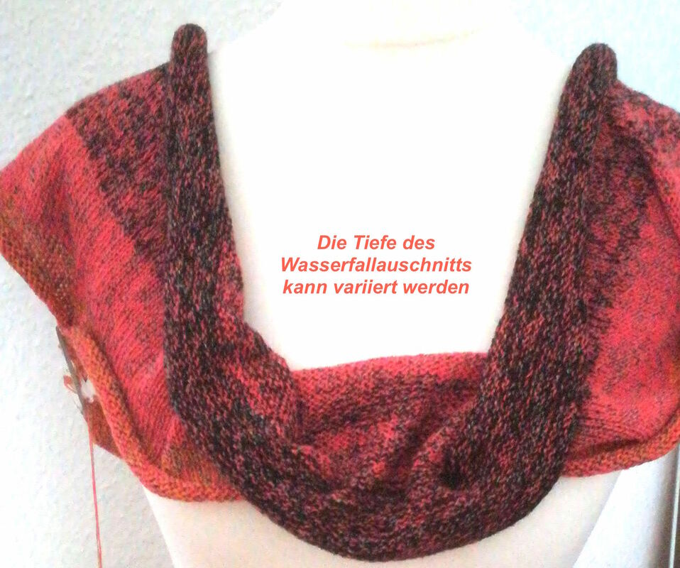 Der Ausschnitt fließt, die Ränder rollen sich! Die Tiefe des Wasserfall-Ausschnitts könnt ihr ganz nach euren Wünschen variieren. Gestrickt wird von oben, ähnlich wie bei einem Raglanpulli. Das Ganze wird am Stück aus einem Bobbel gestrickt - nur für den doppelten Rollrand wird einmal neu angesetzt. Wer will, kann auch Rollränder an den Ärmeln anbringen. Zusätzlicher Clou ist die Raffung unten.