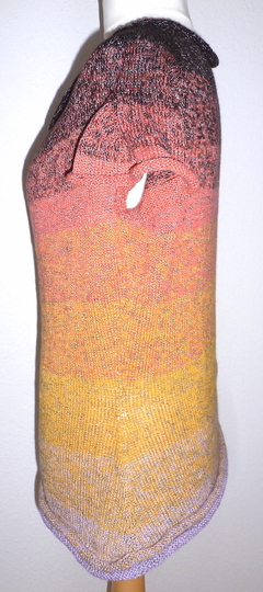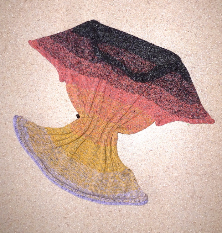Ihr bebötigt vierfädiges Farbverlaufsgarn (50 % Baumwolle, 50 % Polyacryl, Maschenprobe bei glatt rechts 23-25 Maschen pro 10 cm).