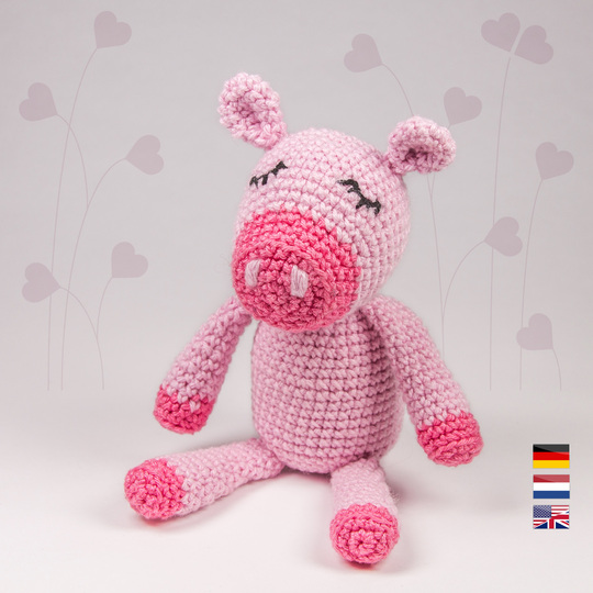 Hier kannst Du eine Häkelanleitung für das Schweinchen 'Scarlett' im PDF-Format kaufen.