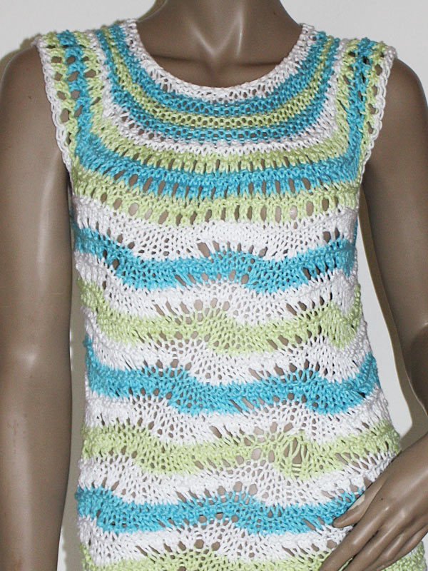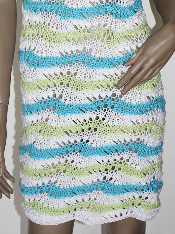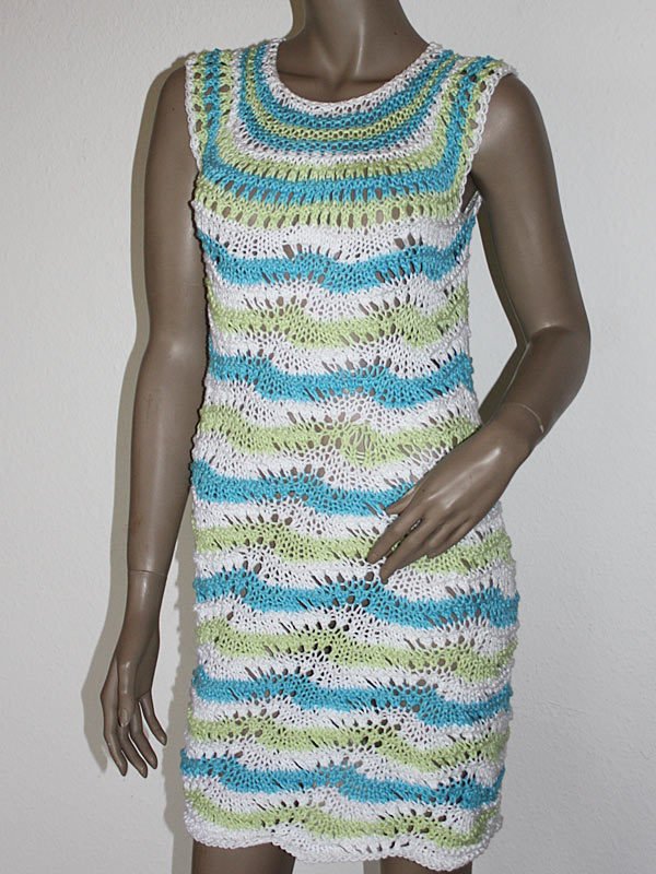 Leicht zu strickendes Kleid, das Kleid wird von unten nach oben in Runden gestrickt.