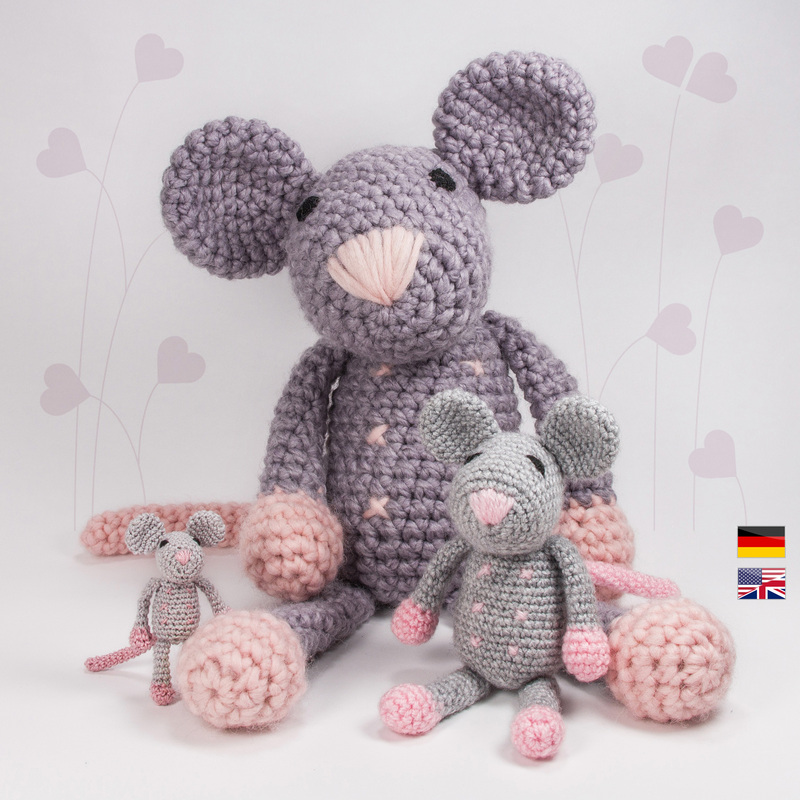 Hier kannst Du Häkelanleitungen für die Ratte 'Rosalie' in 3 Größen im PDF-Format kaufen.