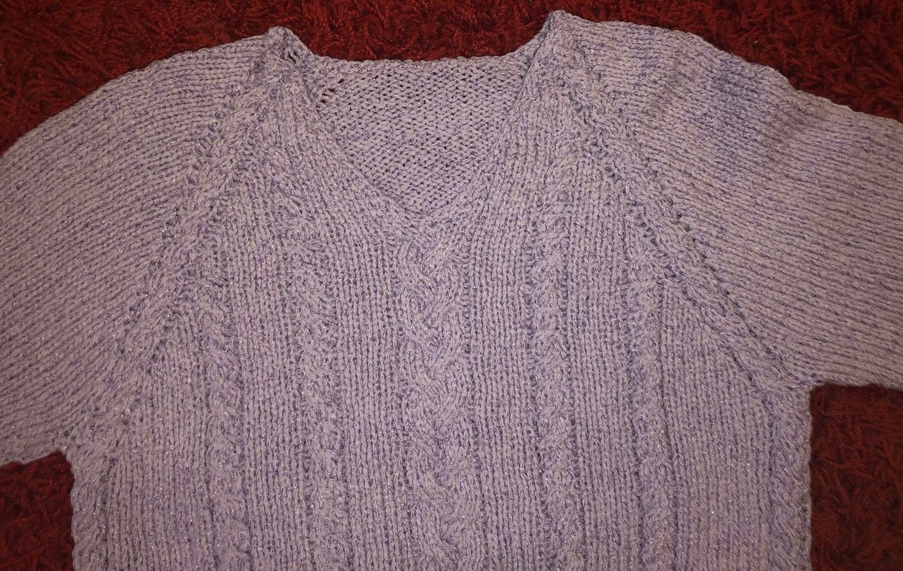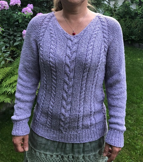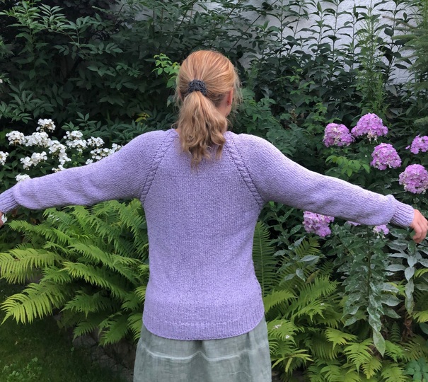 Gestrickt wird von oben nach unten im Raglan-Schnitt mit schönen auffälligen Raglanlinien.