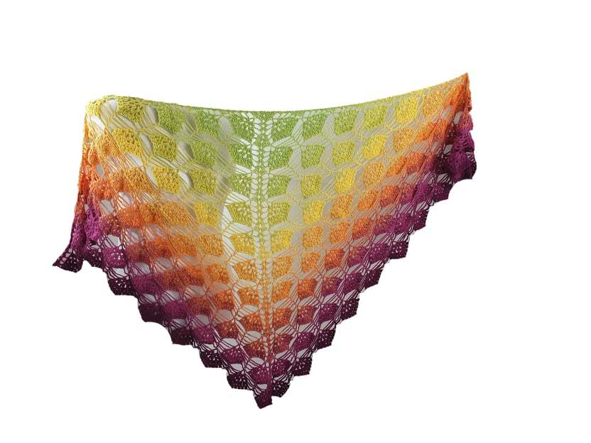Die Schmetterlinge der Liebe, das klassische Dreieckstuch dass durch sein verspielt, romantischen Muster jeden in seinen Bann zieht. Es lässt sich vielseitig kombinieren. Dank des ausführlichen Textes und der übersichtlichen Häkelschrift ist es für Anfänger sehr gut geeignet.