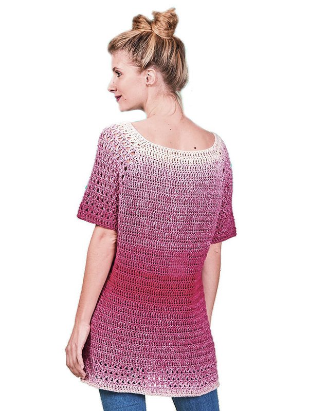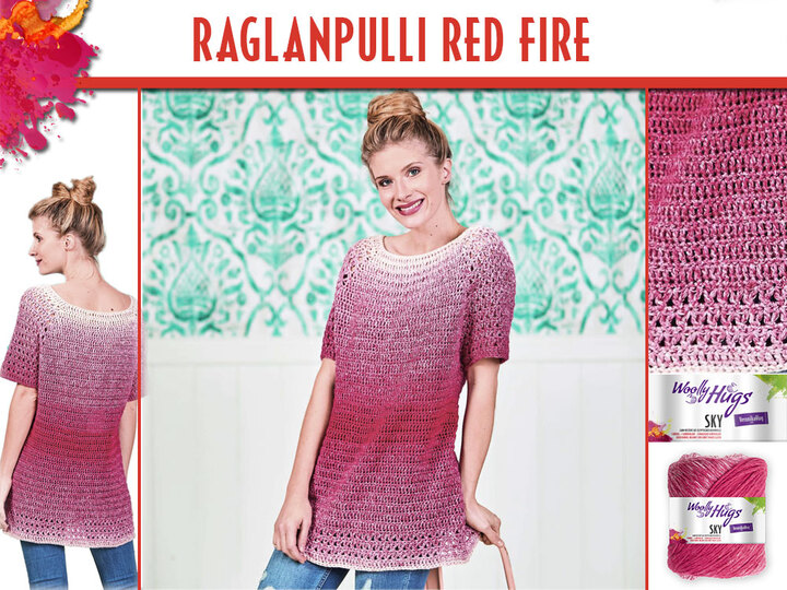 Schnell gehäkelt und eine super Passform hat dieser Pulli. Er ist nicht so warm wie er aussieht, denn die Woolly Hugs Sky ist aus luftiger leichter Baumwolle.
