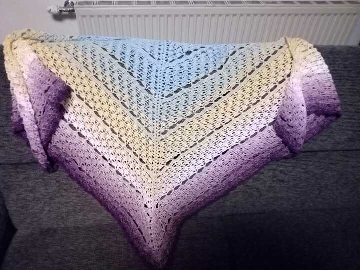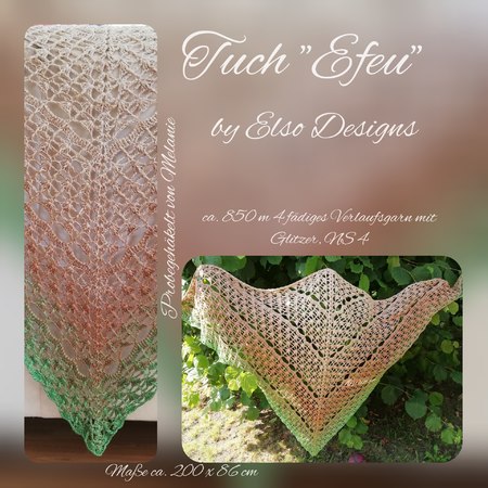 Ihr erhaltet hier eine Anleitung für ein eingngiges, luftiges Muster. Verwendet werden nur 4 Maschen und wiederholt werden stetig 9 Maschen. Das Tuch kann als Wendetuch getragen werden und man kann durchaus auch kleine LL für das Projekt nutzen. Das Tuch ist beliebig erweiterbar.