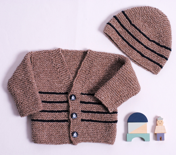 Strickanleitung für eine lässige Babyjacke und passender Mütze, für Babys von 3-24 Monate (62/68, 74/80, 86/92) - Auch für Anfänger geeignet!