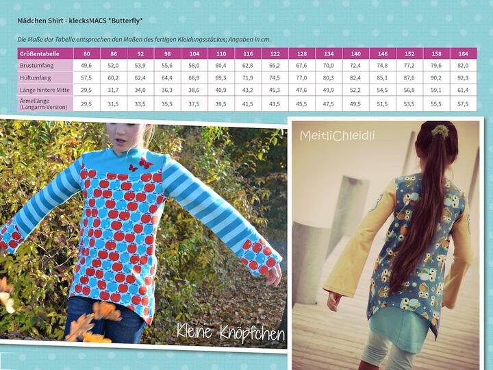 Den klecksMACS Schnitt kannst Du bequem in schwarz/weiß am eigenen Drucker in Originalgröße DIN A4 ausdrucken, nach Anleitung zusammenkleben und ausschneiden. Weiters beinhaltet dieses Ebook eine bebilderter Schritt für Schritt Nähanleitung und ein paar hilfreiche Tipps bezüglich der Passe.