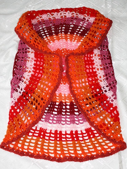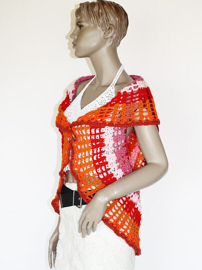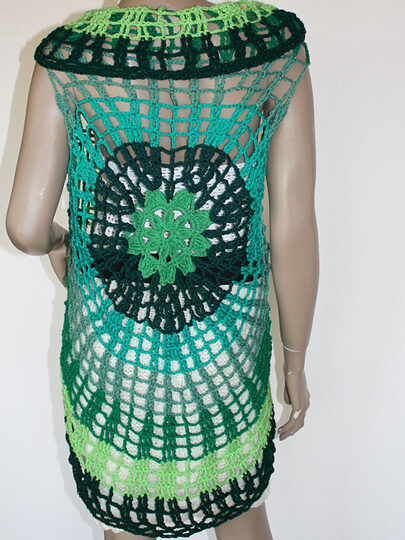 Es kann auch nach Größe 42/44 gehäkelt werden, dann ein paar Runden weniger, je nachdem wie man es möchte.