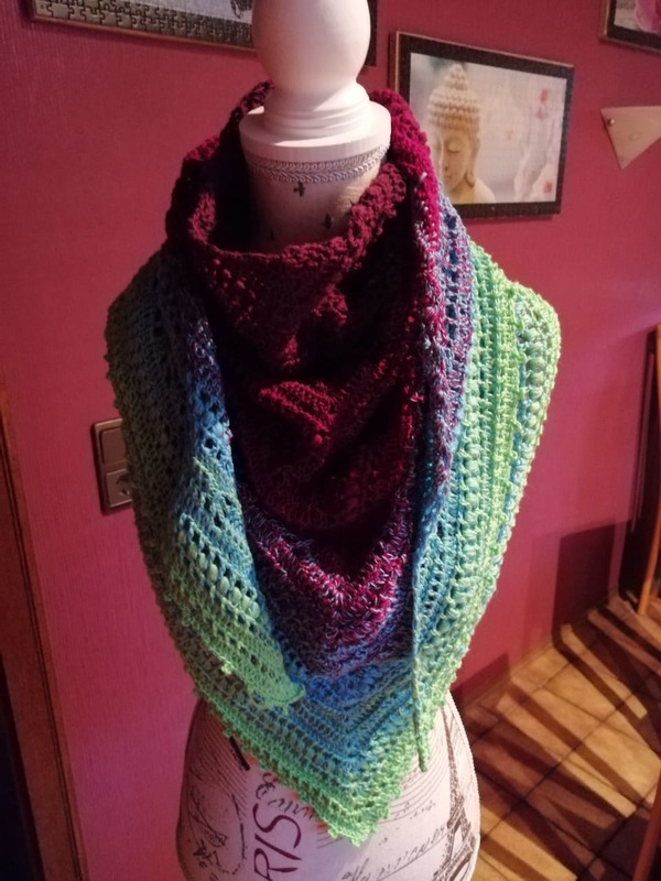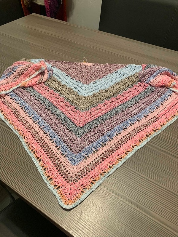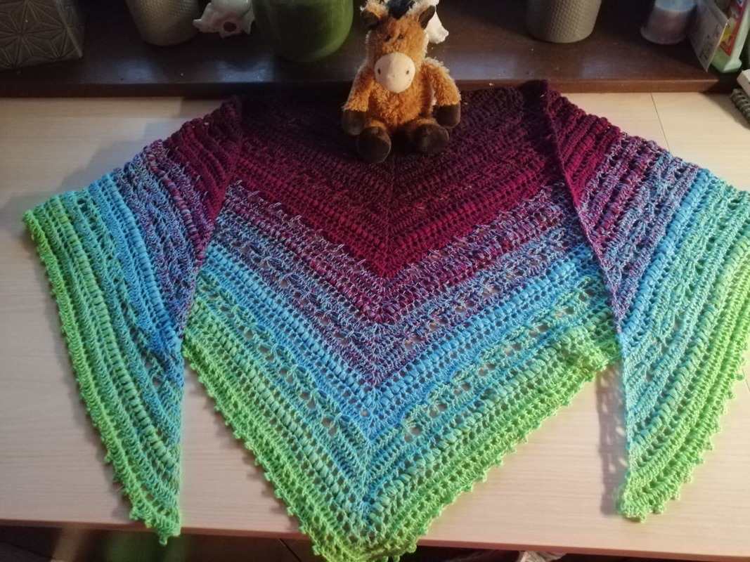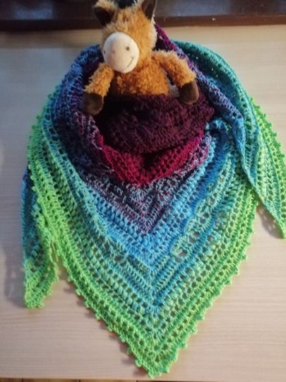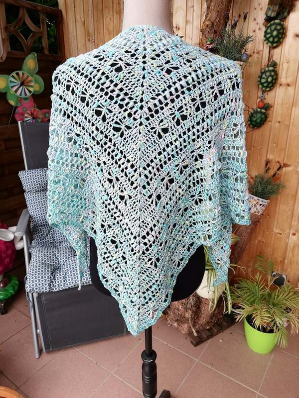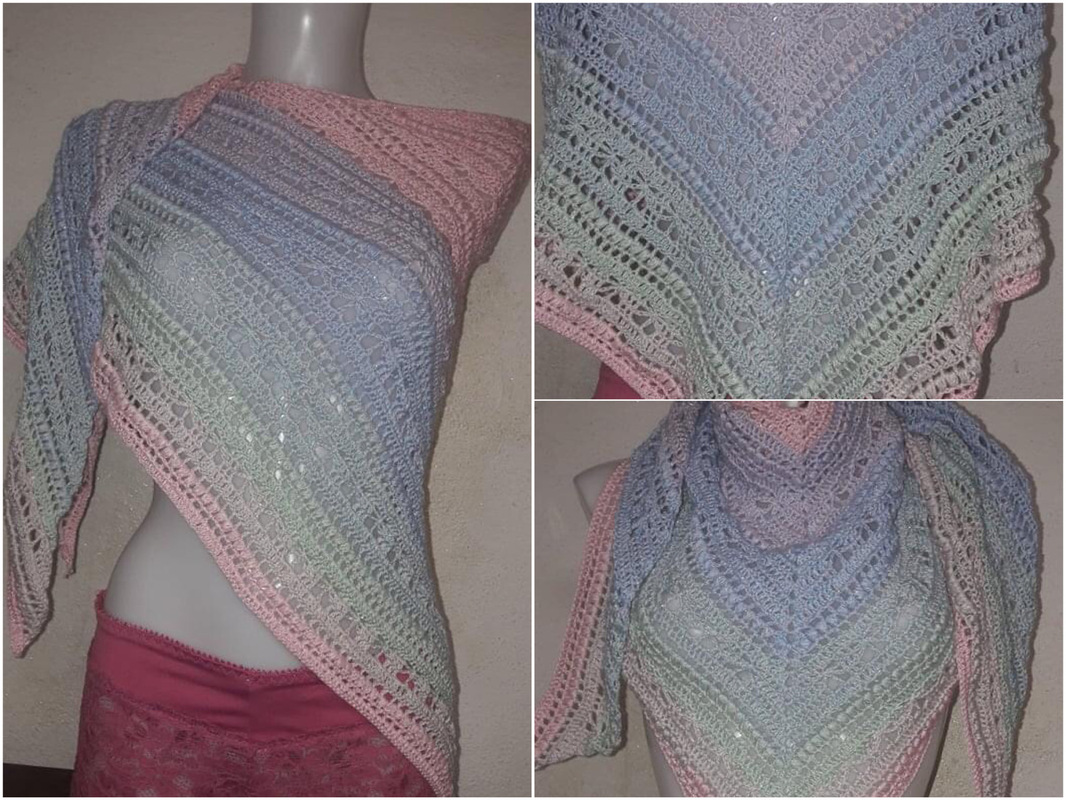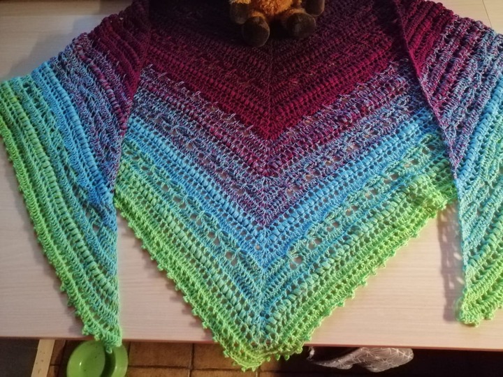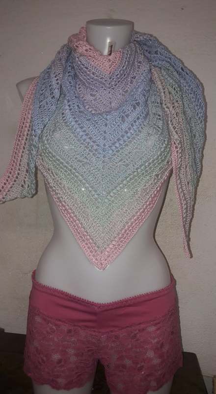 Meine Maße bei dem Tuch waren - Oberkante : ca. 216 cm - Mitte zur Spitze: ca. 104 cm