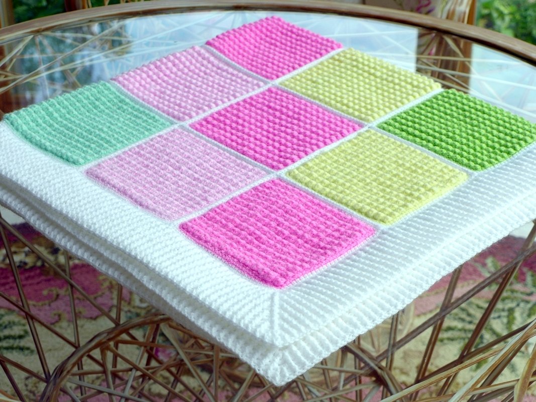 Sie ist leicht auch von Häkelanfängern zu fertigen, da ich alles ganz genau und Schritt für Schritt erkläre und zeige. Allerdings müssen wir schon Fleiß und Ausdauer besitzen. Zuerst häkeln wir jede Menge gleicher Vierecke, die wir am Ende aneinanderhäkeln. Als schmückenden Abschluss häkeln wir einen einfarbigen reliefartigen Rand. Fertig ist eine wunderschöne neue Decke fürs Kind, Enkelkind oder für sich selbst.