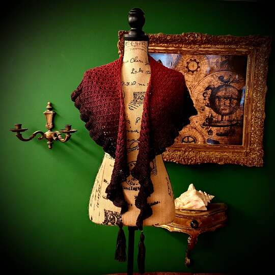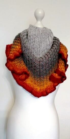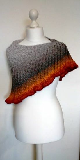 Ein elegantes Herbst/Wintertuch mit einem einfachen Muster und einer verspielten Rüschenborte.