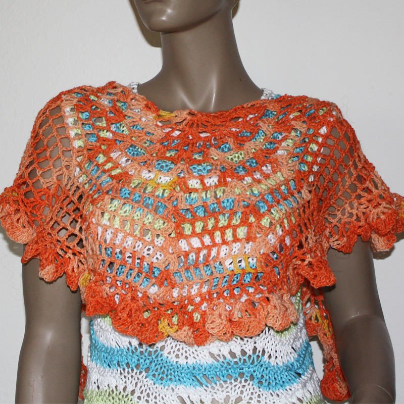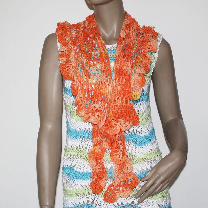 Ich habe das Tuch mit einer Sockenwolle 4fach und einer großen Nadel gehäkelt.