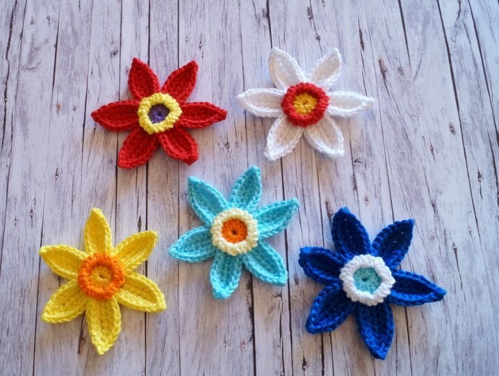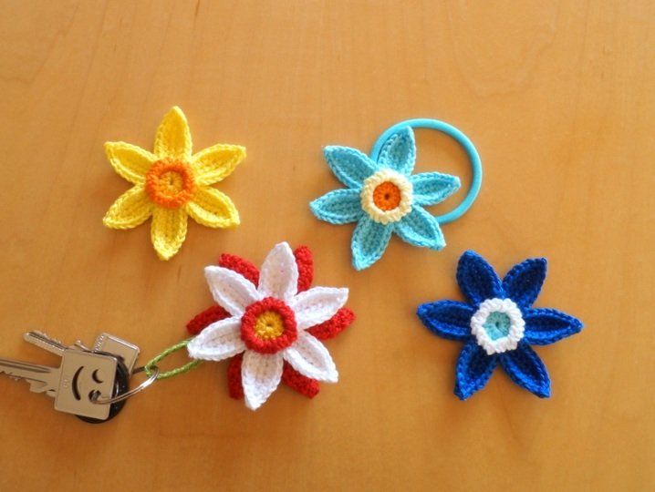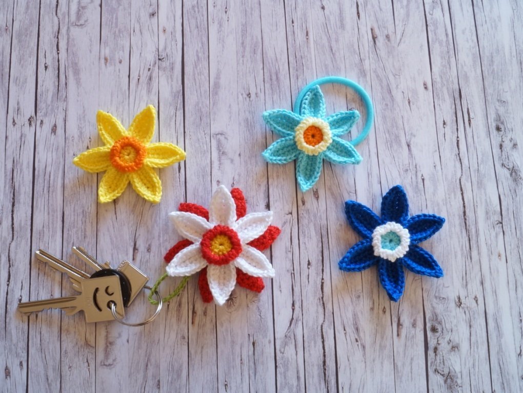 Diese bunten Blumen sind sehr vielseitig einsetzbar. Sie fungieren als Streudeko oder Applikation, Brosche oder Schlüsselanhänger, Haargummi oder Blumenstecker und vieles Weiteres.