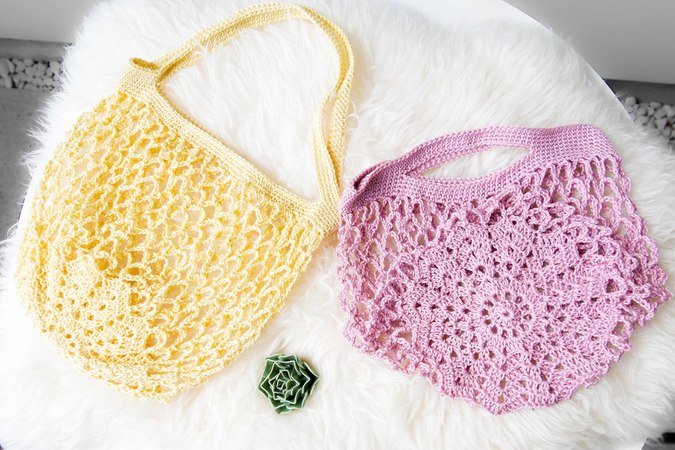 In dieser Anleitung erkläre ich dir schriftlich mit Hilfe von vielen Schritt-für-Schritt-Bildern wie du diese wunderschönen Einkaufnetze mit einem ganz besonderem Sternen-Boden mit kurzen oder langen Henkeln häkeln kannst.