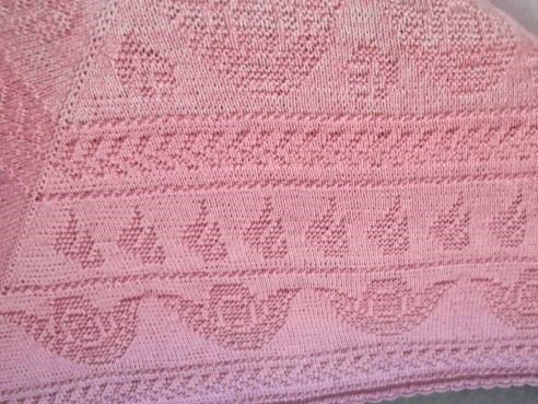 Die schönen Engel Motive und Rosen sind die Grundlagen für dieses romantische Tuch.