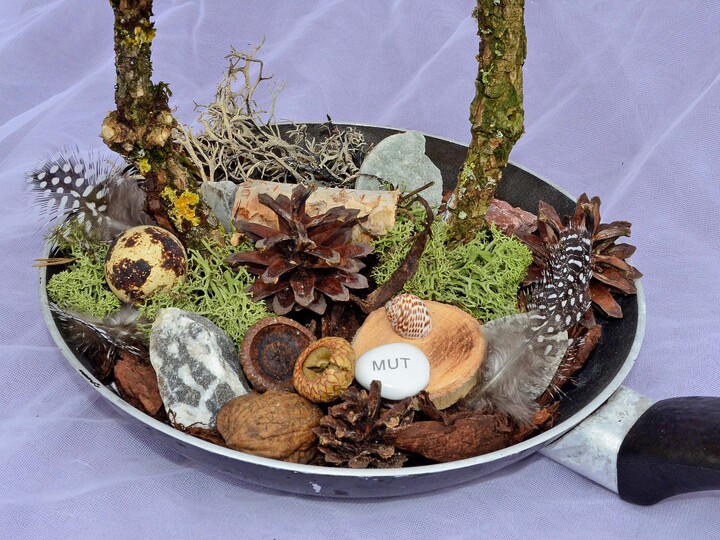 Naturmaterialien jeglicher Art, zb Eicheln, Zapfen, kleine Äste ect , diese findest du auf jedem Spaziergang.