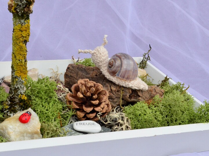 Taubeneier, Spruchsteine, Ziermoose, kleine Astscheiben , Zierkies oder