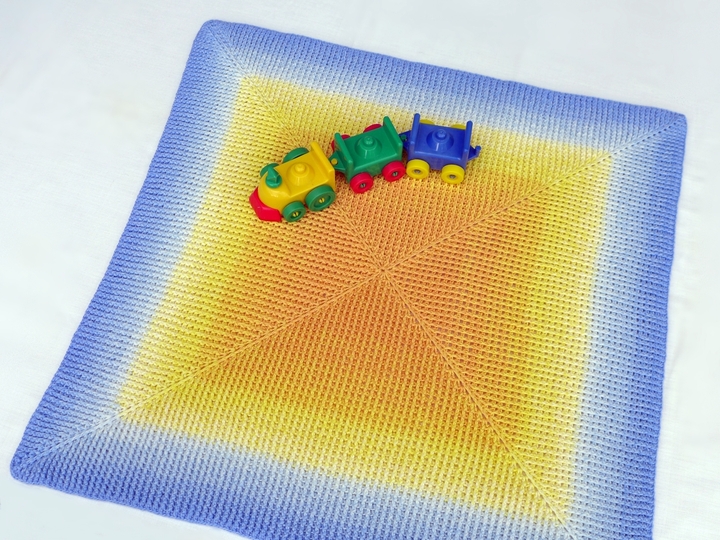 Meine Kinder- oder Spieldecke ist aus 100 % Merino-Wolle gehäkelt. Das garantiert, dass sie schön warm und weich ist, da Wolle wärmend und atmungsaktiv ist. Der besondere Farbeffekt kommt direkt aus dem großen Wollknäuel. Im Beispielbild habe ich mich für einen Bobbel mit nur 4 Farben entschieden, da die Farbverläufe hier sanfter ausfallen. Mein Sohn und meine Schwiegertochter mögen es nicht so quietschbunt, dafür hochwertiger vom Material her. Mit diesem sanften Farbverlauf passt die neue Spieldecke aus Merinowolle sehr gut ins Kinderzimmer meines Enkels. Ihr könnt aber auch jedes andere beliebige Garn nutzen. Wenn Euer Garn dicker ist, wächst die Decke schneller und wird größer - Ihr könnt die Größe und Material also individuell anpassen.