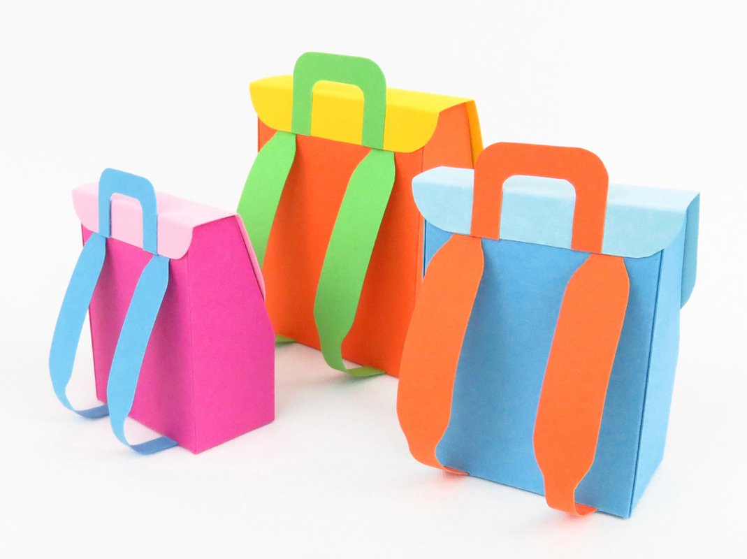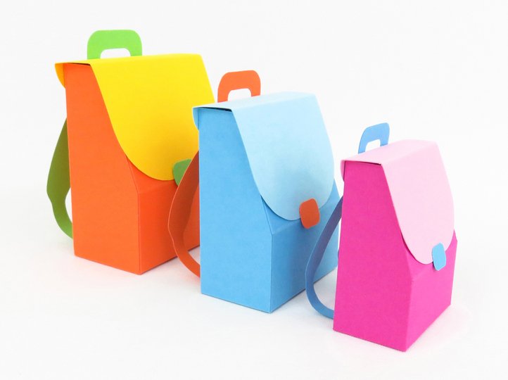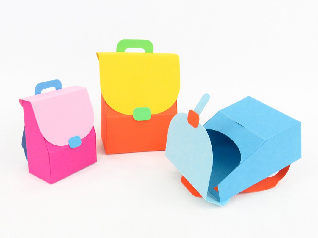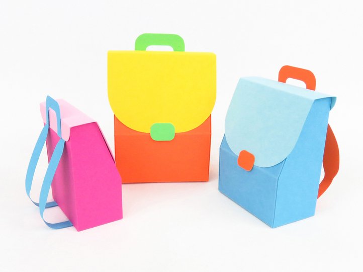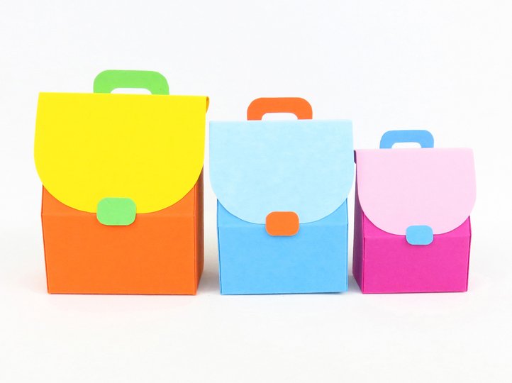Diese Schulranzen sind sehr klein und deswegen als Verpackung für einige Süßigkeiten, Geldgeschenke und sehr kleines Schulzubehör, wie Radiergummis, Bleistiftspitzer und ähnliches, gedacht. Besonders gut kannst du diese Ranzen als Inhalt einer Explosionsbox nutzen – je nachdem wie groß deine Box ist, kannst du zwischen drei Größen die am besten passende aussuchen.