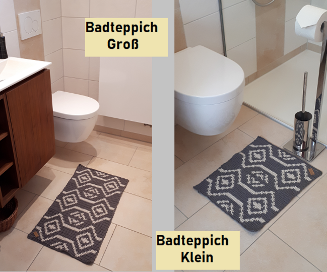 Im Badezimmer, Gäste WC oder vor Duschen und Badewannen, vor der Haustüre oder Terrassentüre in der Diele. Diese Teppiche können überall hübsch anzusehen sein. Diese beiden Modelle kommen durch das zweifarbige Muster sowohl auf Fließen als auch auf Parkettböden schön zur Geltung. Und mit diesem Zeitlosen Muster und den dezenten Farben passen sie bestimmt in jeden Haushalt.