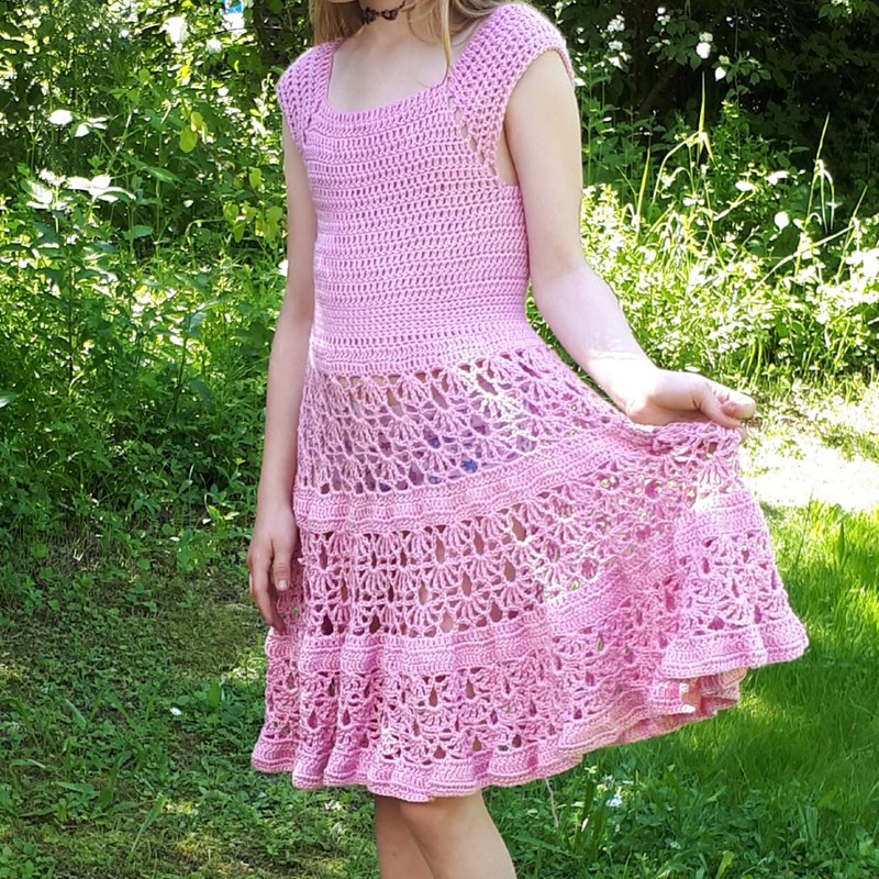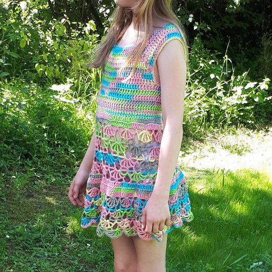 Es eignen sich alle leichten Sommergarne für das Kleid. Auch Farbverläufe sehen sehr schön aus.