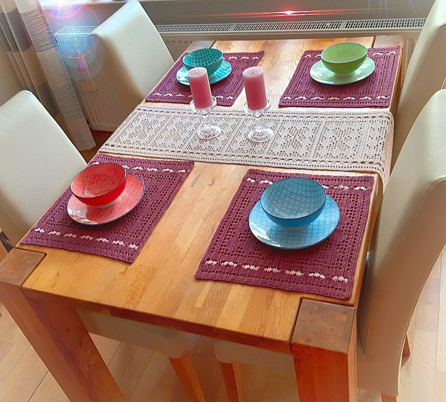 Da alles gut bebildert und jeder Abschnitt extra aufgeführt ist, ist der Tischsets einfach nachzuarbeiten.