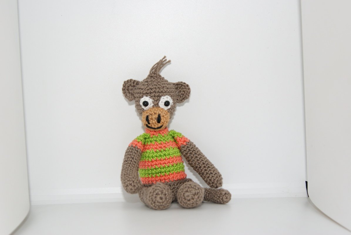 Hierbei handelt es sich um die Anleitung zum häkeln des Äffchens. Bildererklärungen so wie auch Erklärungen der einzelnen Schritte sind mit enthalten.